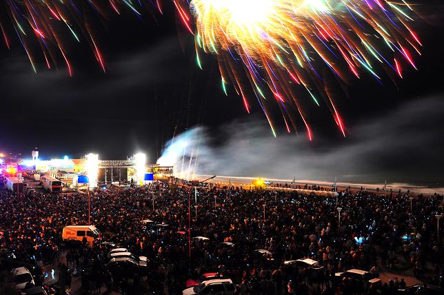 La fiesta finalizó con el postergado Show de Fuegos Artificiales previsto para Año Nuevo, y durante unos diez minutos, a orilla del mar, el público quedó inmóvil disfrutado del espectáculo.
