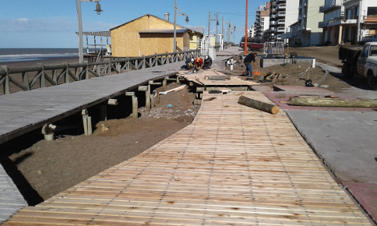 Luego del último temporal que sufrió Monte Hermoso el pasado mes de julio, la Secretaría de Obras Públicas continúa trabajando en la reconstrucción y renovación en tramos de más 800 metros de paseo costero, accesibilidad y bajadas a la playa.